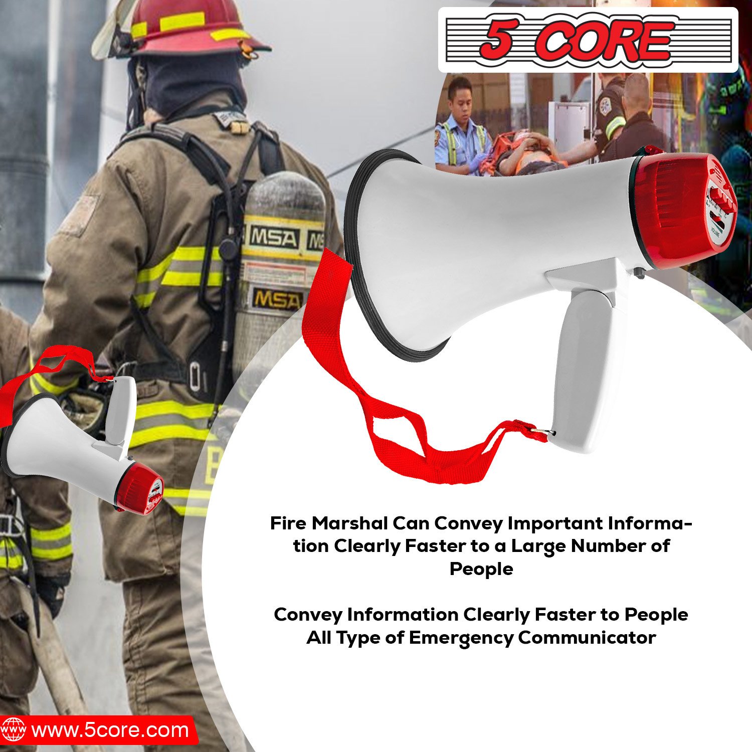5 Core Megaphone Bullhorn Speaker 30W Bull Horn Battery Power Mini Cheer Megafono 800 Feet Range Loudspeaker W Siren Recording Ergonomic Handle for Co